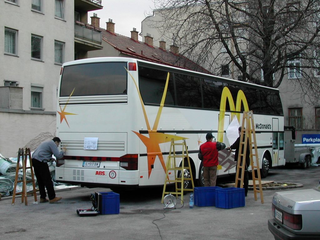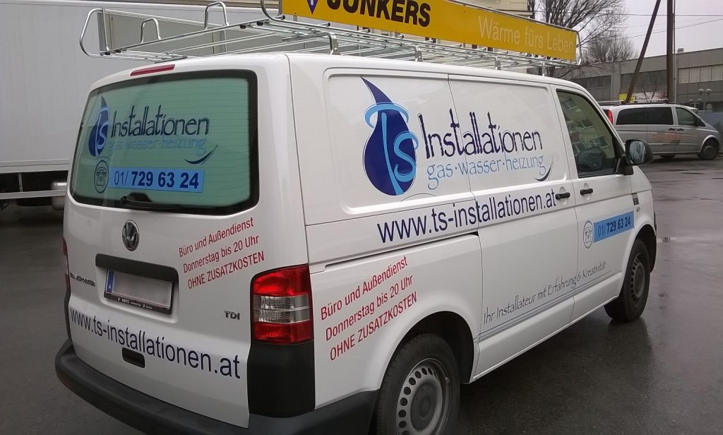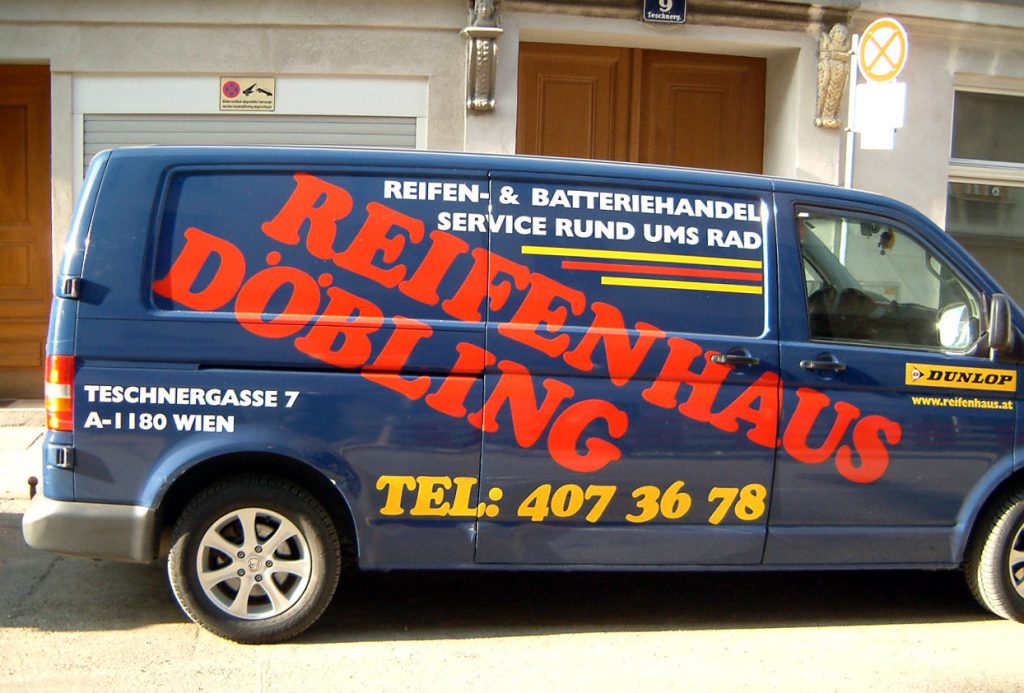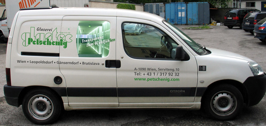 Bei Beschriftungen und Beklebungen werden sämtliche Arbeitsschritt von Grafik, über Druckproduktion oder Folienschnitt am Schneideplotter bis zu Montage und Verklebung bei Dittrich Werbegestaltung vorgenommen.